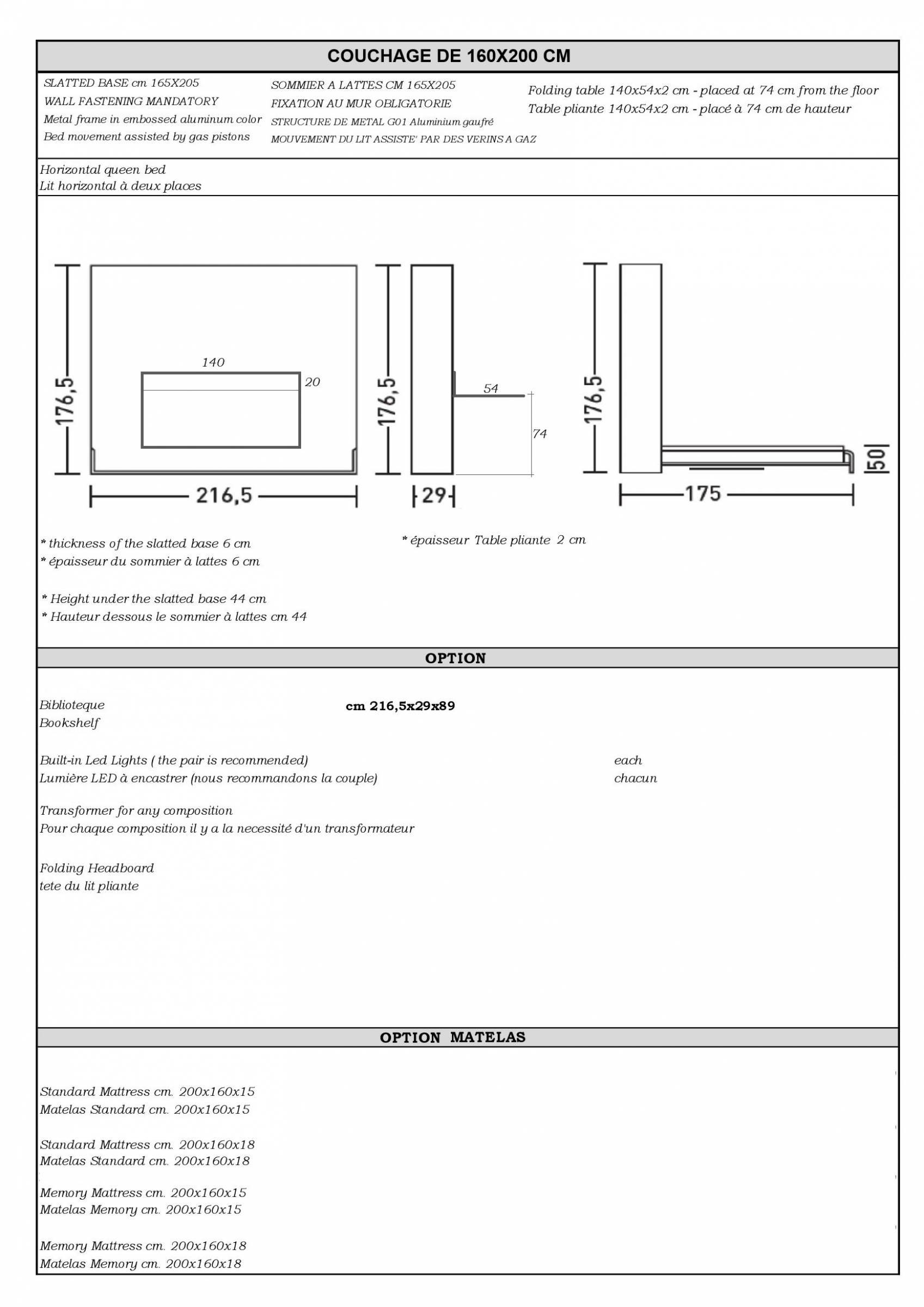 Lit escamotable 90x200 avec tablette bureau repliable présenté ici !Lit escamotable 140x200 avec tablette bureau rabattable présenté ici !Il est obligatoire de fixer le lit escamotable correctement et exclusivement à un mur porteur suivant les recommandations du fabricant. Ne pas fixer ce meuble sur une cloison en placo plâtre. Il est recommandé par le fabricant de faire monter, poser et fixer le meuble par un monteur professionnel.